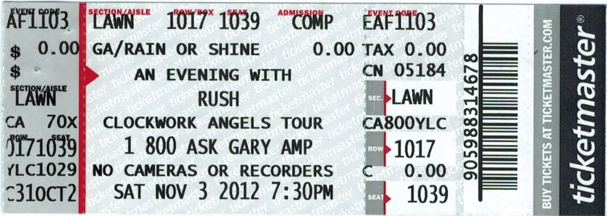 Rush - 11/3/12 at Ask Gary Ampitheater (Tampa)